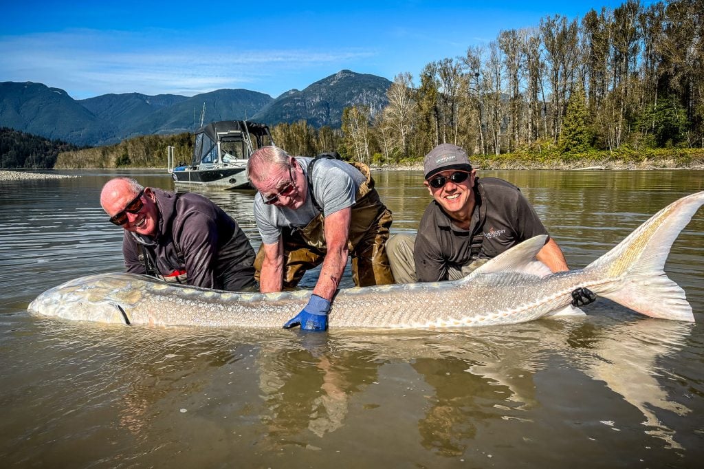Thanks to the fantastic work of the non-profit Fraser River Sturgeon Conservation Society (FRSCS), the fish in the rivers have been allowed to thrive, and the rivers now offer the last healthy wild stocks of this prehistoric species on the planet. Our partners at BC Sportfishing Group work closely with the society to ensure these fish are protected and looked after – as you’d expect, all fishing is strictly catch and release, and all fish are tagged and recorded.